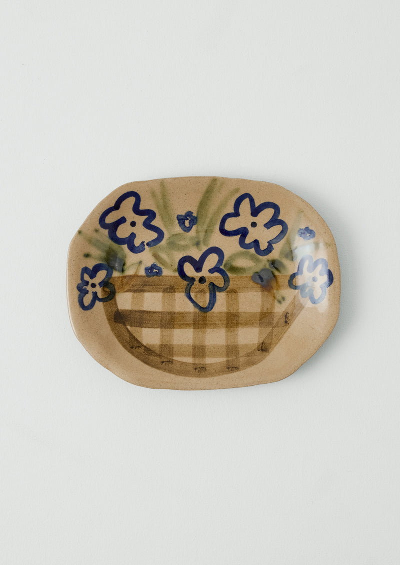 Press-moulded platter by Sophie Fletcher of Zosia Ceramics, crafted in Cambridge. Patterned with expressive cobalt and oxide flowers, each piece is a unique reflection of fluid, painterly gestures.