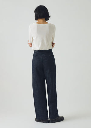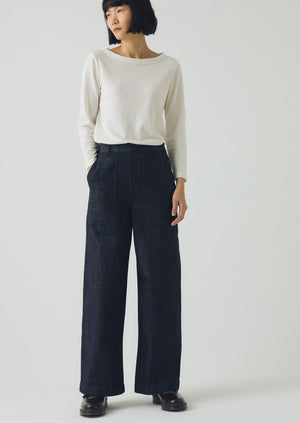 Our Annie full-length trousers are slightly longer in the leg than our regular Annie shape. Crafted from cotton denim to sit neatly on the waist with a flat front, falling to long-cropped legs, then finished with a back buttoned jet pocket.