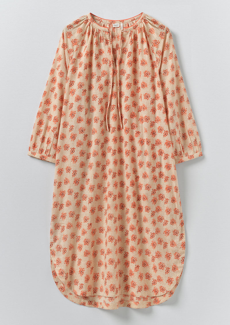 Hand screen-printed with floral motifs, our organic cotton nightdress has ties at the neckline. Shaped with raglan sleeves and gathered cuffs, then finished with side seam pockets and a curved hem.