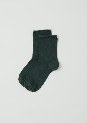Soft socks made in Italy from a cotton cashmere blend. Made with rolled edge at cuff and reinforced heel and toe.