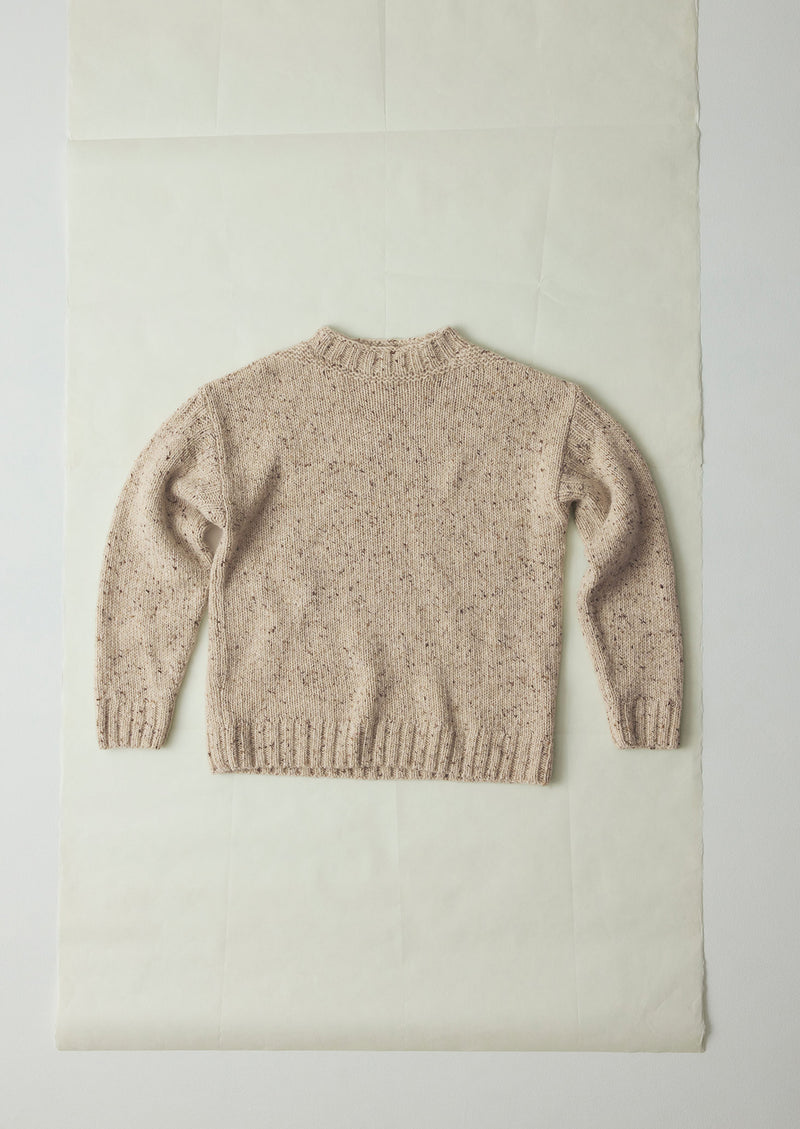 Our jumper is made using a flecky wool yarn spun in Donegal. A relaxed shape with dropped shoulders and a high neckline. Finished with ribbed trims. Part of our Menswear collection.