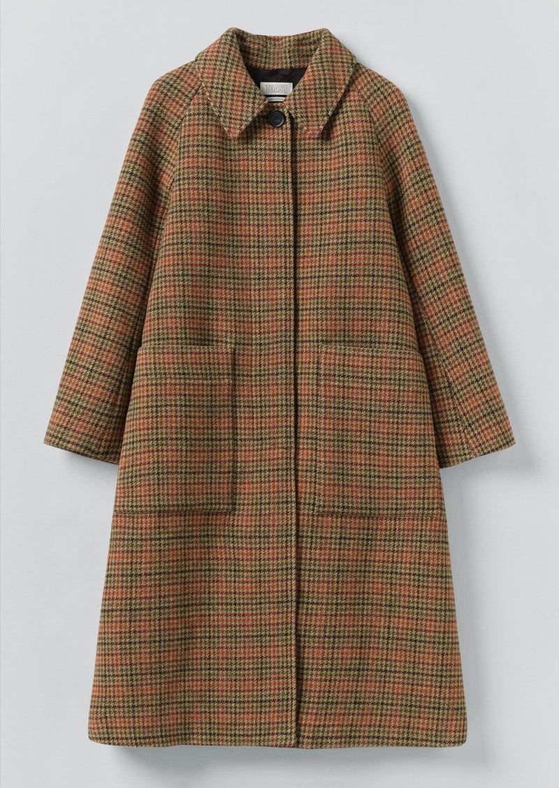 Made from Italian-woven houndstooth wool, raglan sleeves bring a sense of ease to our Frankie coat. Cut to a gentle A-line shape with a deep, elongated back vent for ease of movement, then finished with a cotton twill lining.