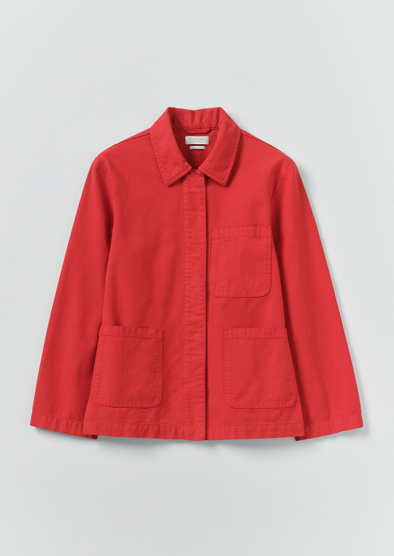 Our herringbone jacket is made from organic cotton canvas, with visible seams forming a panelled effect. With patch pockets and concealed horn buttons, garment-dyed for natural tonal variation.