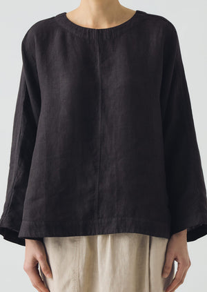 Our easy top is made from linen, garment-dyed for natural variation in colour. With a round neckline and wrist bone-length sleeves. Featuring topstitch accents. Shaped with side splits.