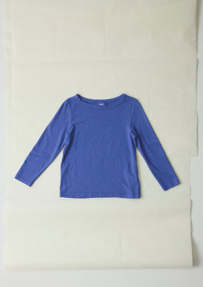 Slubbed organic cotton jersey. Garment-dyed. Boat neckline. Bracelet-length sleeves. Mid-hip length.