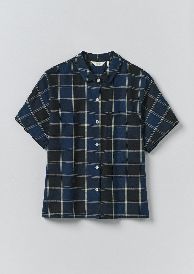 Grown-on sleeves bring a sense of ease to our shirt, which is made from a checked cotton and linen blend inspired by patterns found on textiles at markets. Accented by a chest patch pocket and turning to reveal a back inverted box pleat.