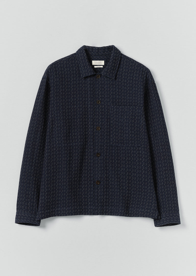 Tiny scatter stitches pattern our relaxed cotton shirt, made from soft double cotton containing organic fibres. Cut to an oversized shape with two chest pockets: one external and one internal. Part of our Menswear collection.
