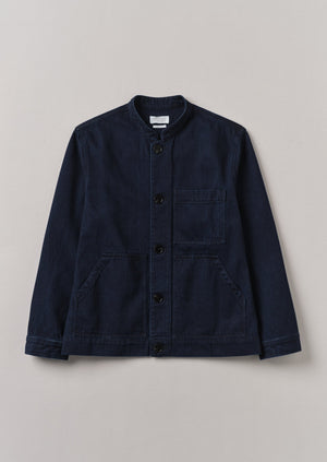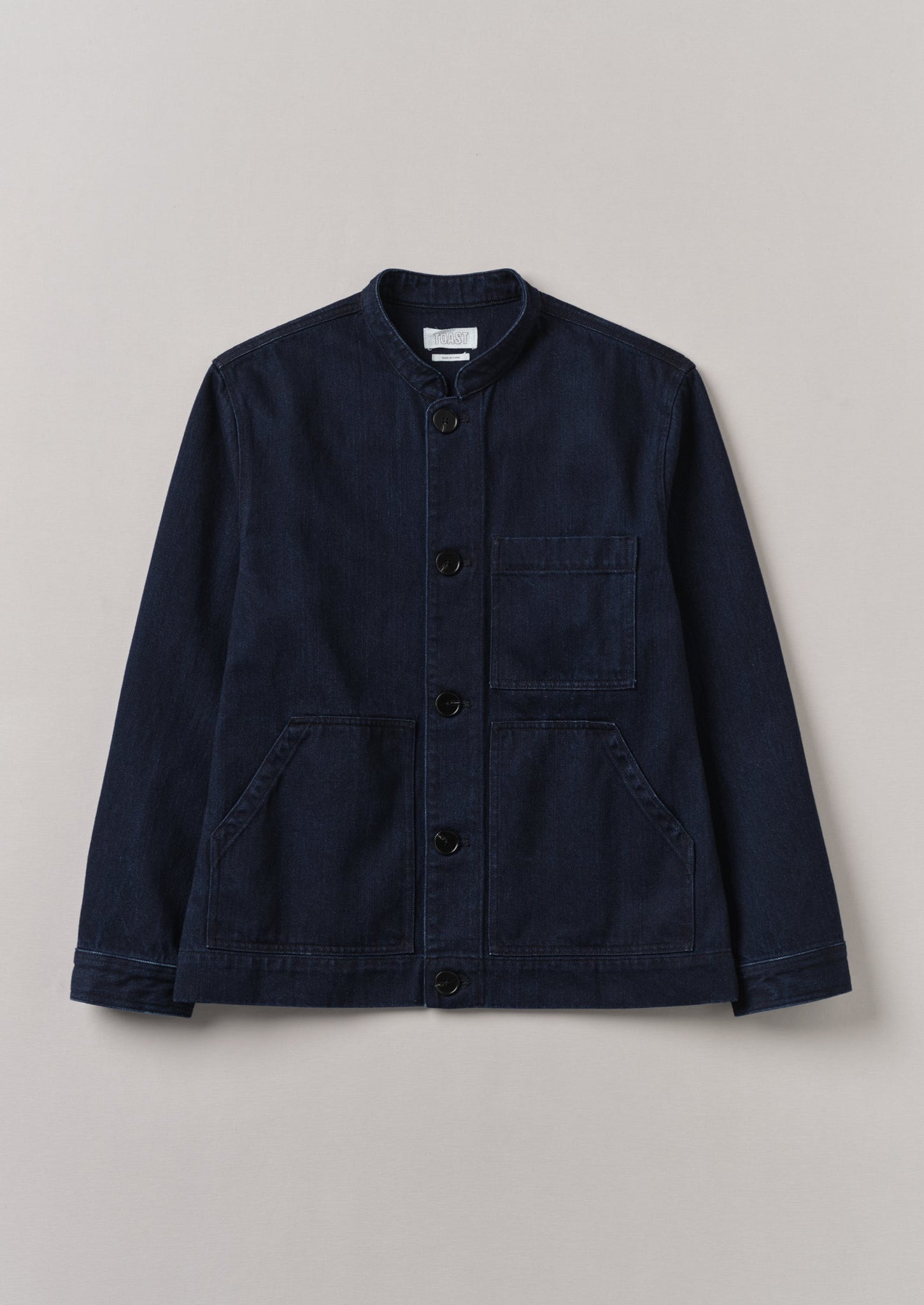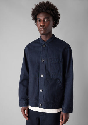 Our workwear-inspired indigo jacket is cut from weighty Japanese Kuroki denim with a stand collar, a single patch pocket on the chest and two patch pockets. Founded in Ibara, Okayama in 1950, Kuroki Mills is one of only a few denim producers with integrated dyeing, weaving and finishing facilities. Part of our Menswear collection.